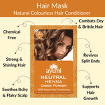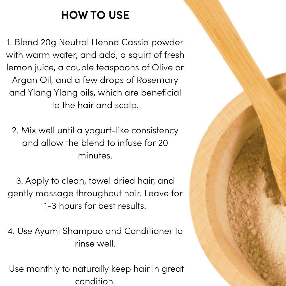 It holds properties that promote hair growth. Also, consider using with natural carrier oils, Cassia Powder, also called neutral henna for hair, smooths the hair cuticle, seals in moisture, and boosts shine. It transforms dull, lifeless strands into silky, glossy locks, providing radiant beauty without the need for chemical-laden serums or synthetic conditioners.