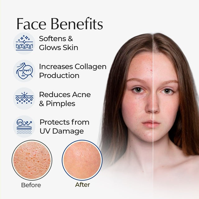 Ideal for individuals with hair thinning, hair loss, dandruff, premature greying, and those seeking to protect and hydrate their skin, fight acne, and relieve joint and muscle pain.