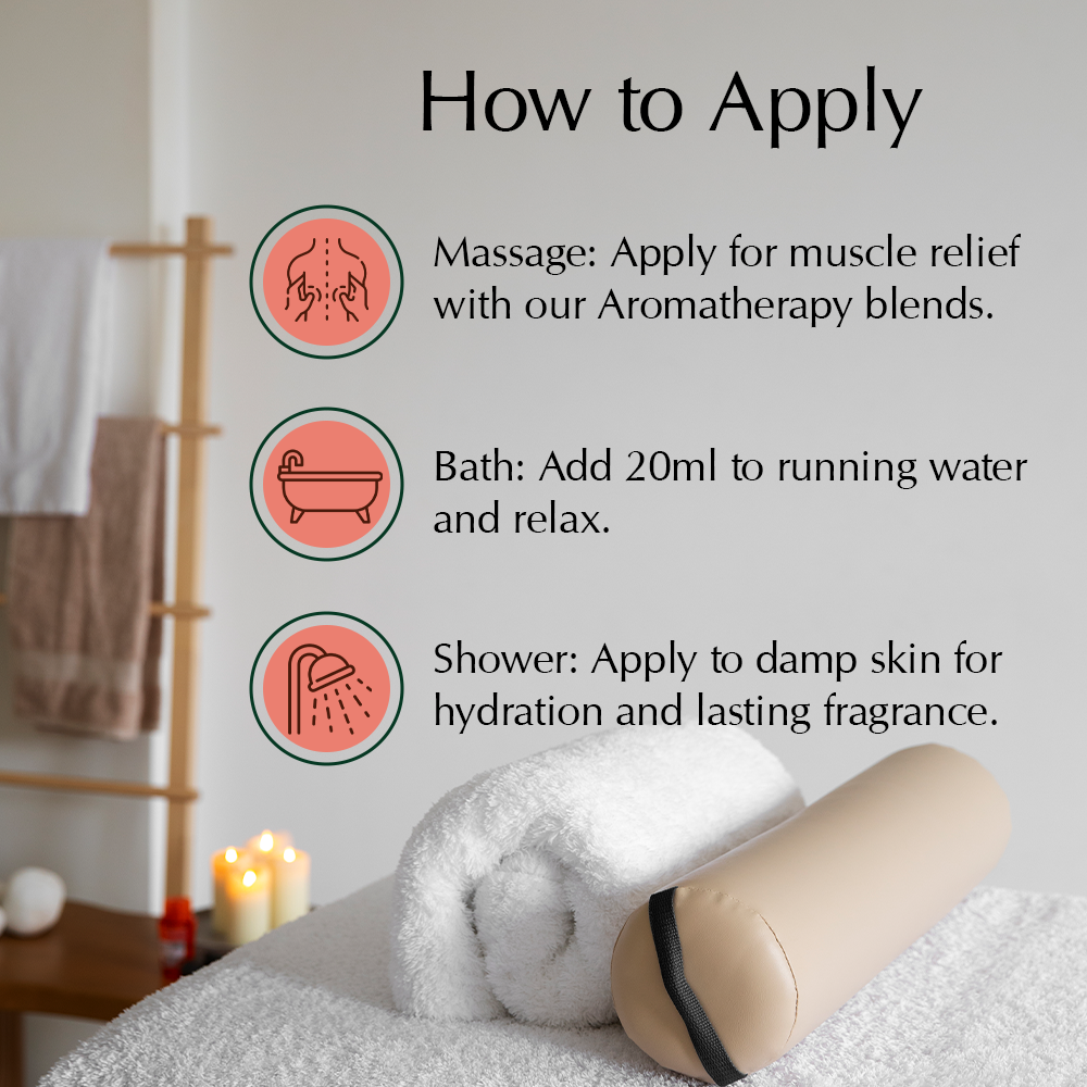 Begin with long, gentle strokes to spread the oil and relax the muscles. Adjust pressure based on comfort and purpose.