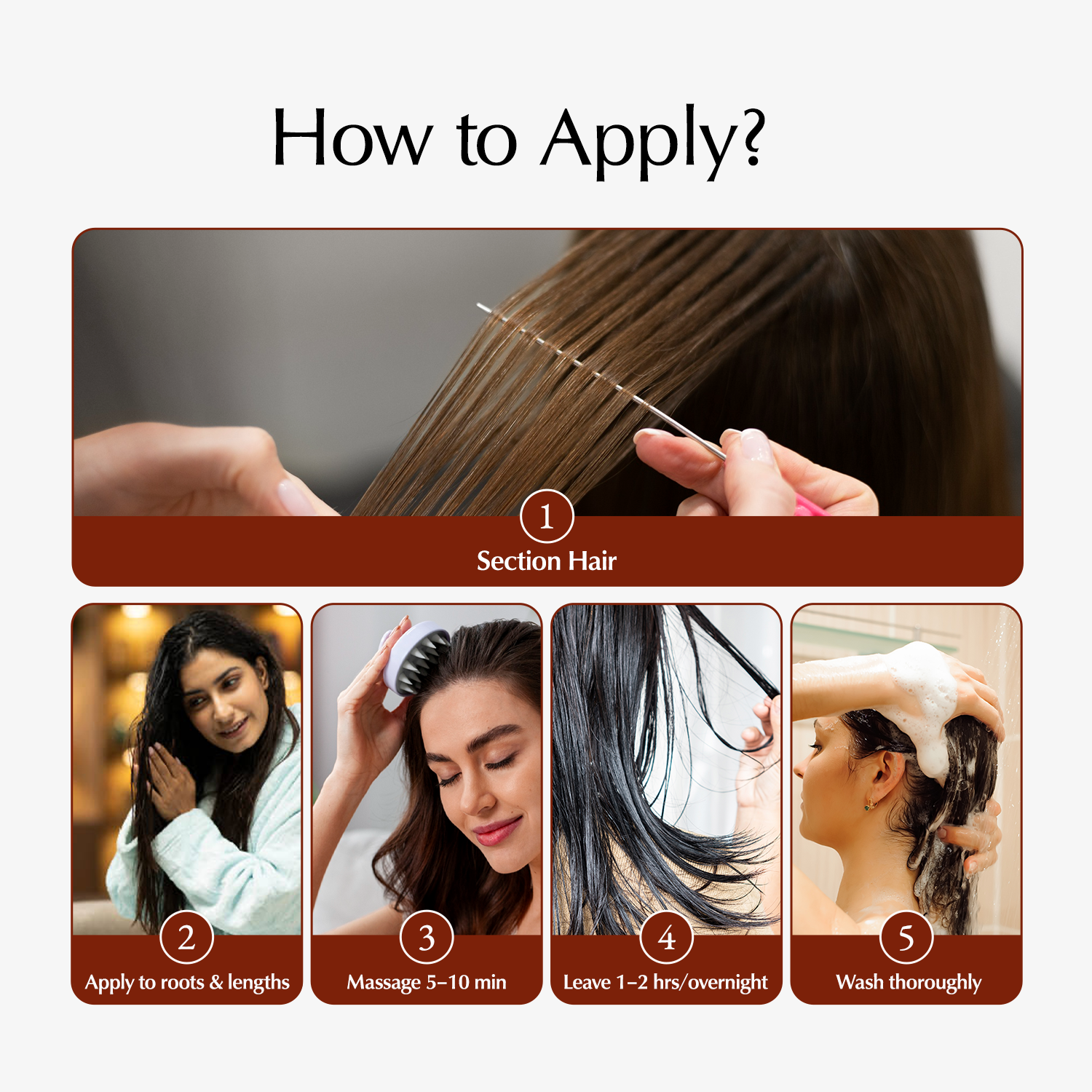 4. Leave it in: Let the oil sit for at least 1–2 hours or overnight for deeper nourishment and maximum growth benefits.